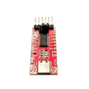 Modulo de comunicación basado en chip FTDI FT232. Alimentación USB tipo C de 5 V. Salida TTL de 3.3V o 5 V, se puede seleccionar con un jumper. Leds indicadores de encendido, TX y RX. Ideal para establecer comunicacion con la UART de microcontroladores, depurar, programar, ETC.